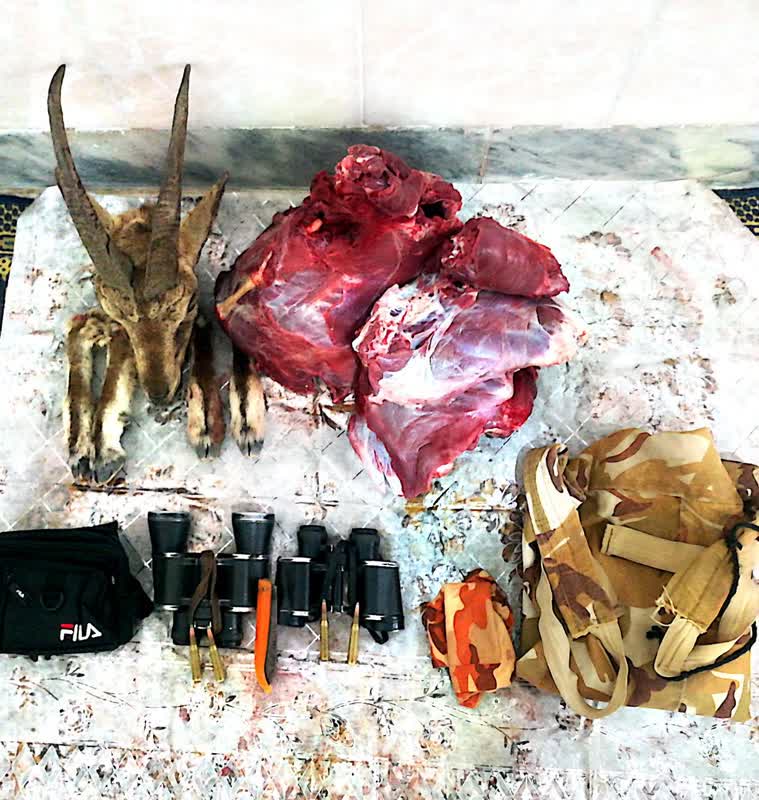 تقی زاده افزود: بر اساس گزارش مردمی مبنی بر حضور متخلفان غیر مجاز در یکی از مناطق آزاد شهرستان عشق آباد ، بلافاصله مامورین یگان به منطقه مورد نظر اعزام و ضمن حضور یک شبانه روز در منطقه و بررسی و پایش نقطه به نقطه محدوده شکار ، موفق به کشف لاشه یک راس کل وحشی حمایت شده ،دو عدد دوربین چشمی ،یک عدد کوله پشتی ،یک عدد چاقو و چهار عدد فشنگ گلوله زنی ۲۷۰ شدند .
