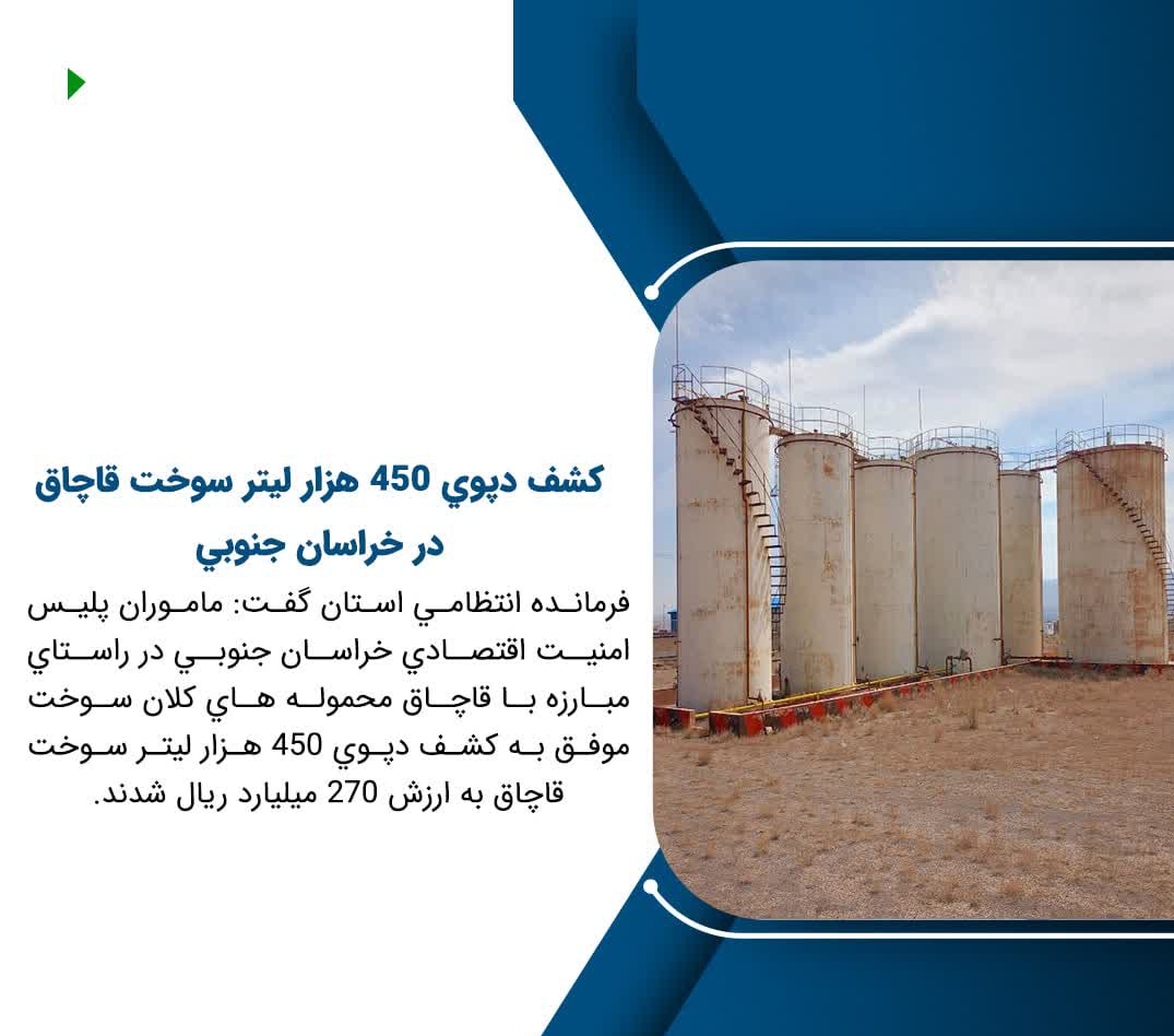 کشف دپوي ۴۵۰ هزار ليتر سوخت قاچاق در خراسان جنوبي
