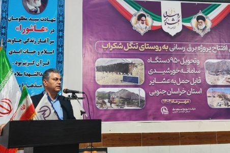 به گزارش پایگاه خبریتحلیلی نگاه خراسان جنوبی، صبح امروز با حضور مهندس مهدی دادگر مدیرعامل شرکت توزیع نیروی برق استان خراسان جنوبی، استاندار خراسان جنوبی، مجری طرح تأمین برق روستایی شرکت توانیر و جمعی از مدیران و مسئولان استانی، پروژه برقرسانی به روستای تنگل شکراب از توابع شهرستان بیرجند به بهرهبرداری رسید.