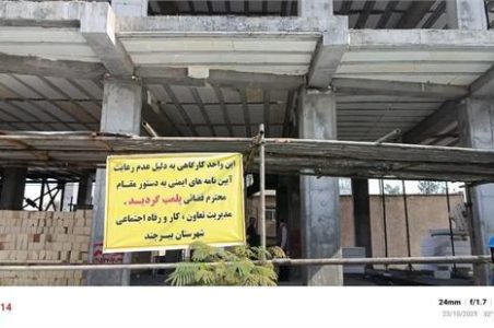 یک کارگاه ساختمانی ناایمن در بیرجند برای حفظ جان کارگران پلمب شد.