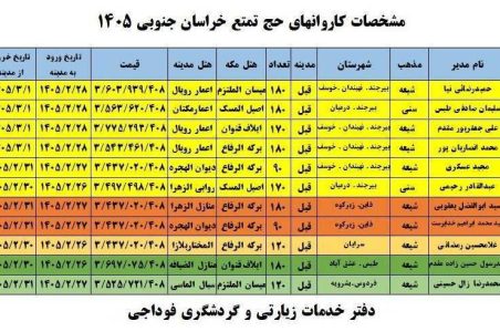 اعلام جزئیات کاروانهای حج تمتع خراسان جنوبی در سال ۱۴۰۵